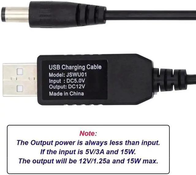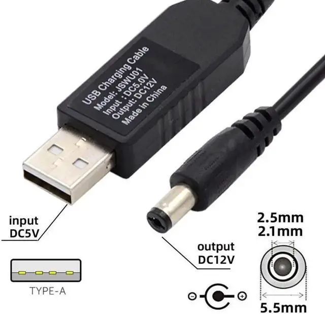 USB 2.0 Type-A DC5V to DC12V 5.5 x 2.1 mm 5.5 x 2.5 mm Voltage Riser Boost Power Plug Barrel Connector Cable 100cm