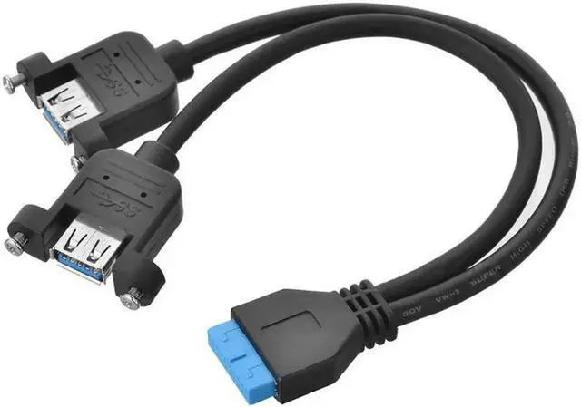 • USB 3.0 Dual Two Port Female Screw Mount Type to Motherboard 20pin Header cable