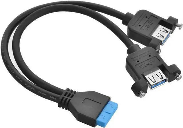 USB 3.0 Dual Ports A Female Screw Mount Type to Motherboard 20pin Header cable Black U3-162-BK