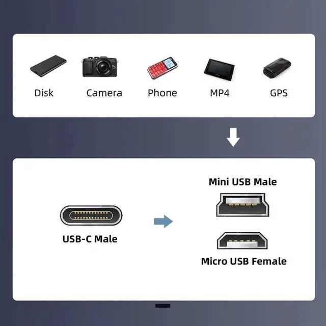 It can convert the Type-C port to mini/micro port.