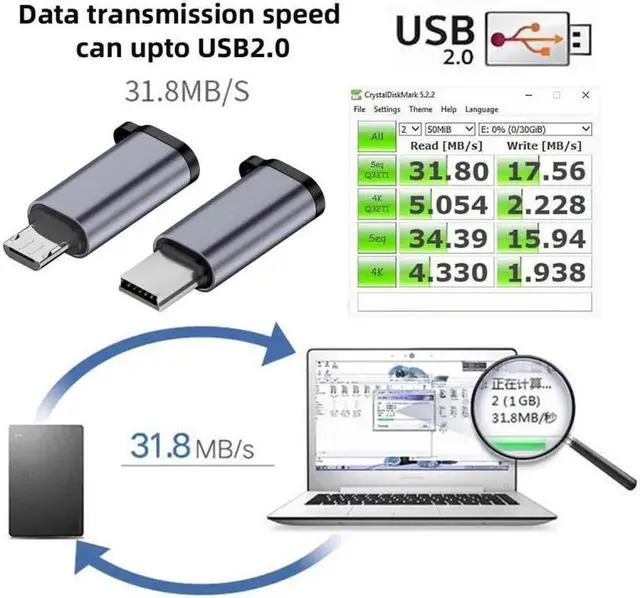 2pcs/lot USB-C USB 2.0 Type C Female to Micro Mini USB Male Power Adapter 480Mbps Data with Chain Holes