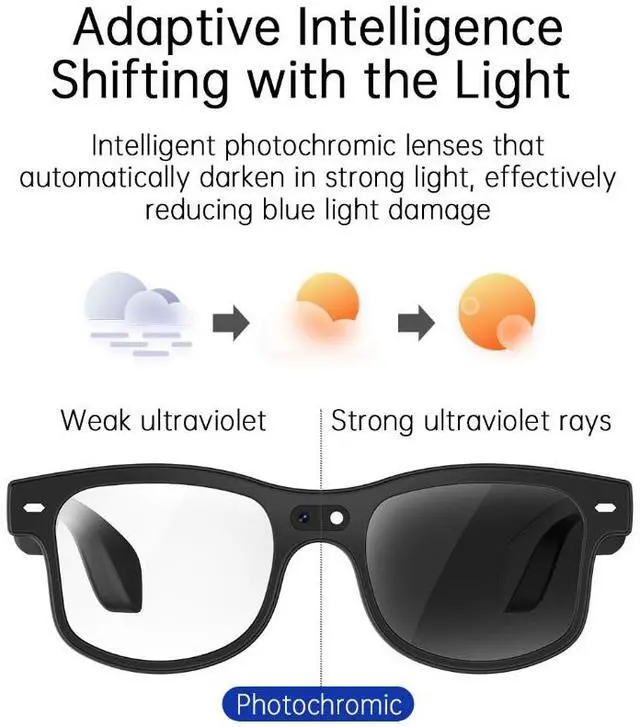 Smart glasses with Bluetooth calling, 8-megapixel camera, AI translation, music recording, sunglasses