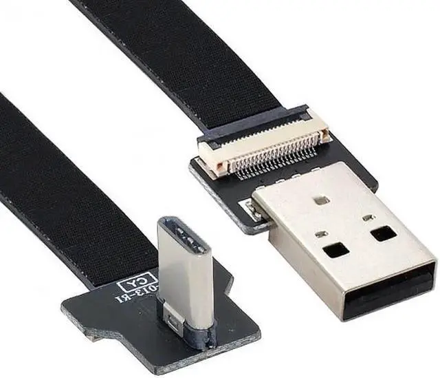 • Right Angled USB 2.0 Type-A Male to USB-C Type-C Male Data Flat Slim FPC Cable for FPV and Disk and Phone