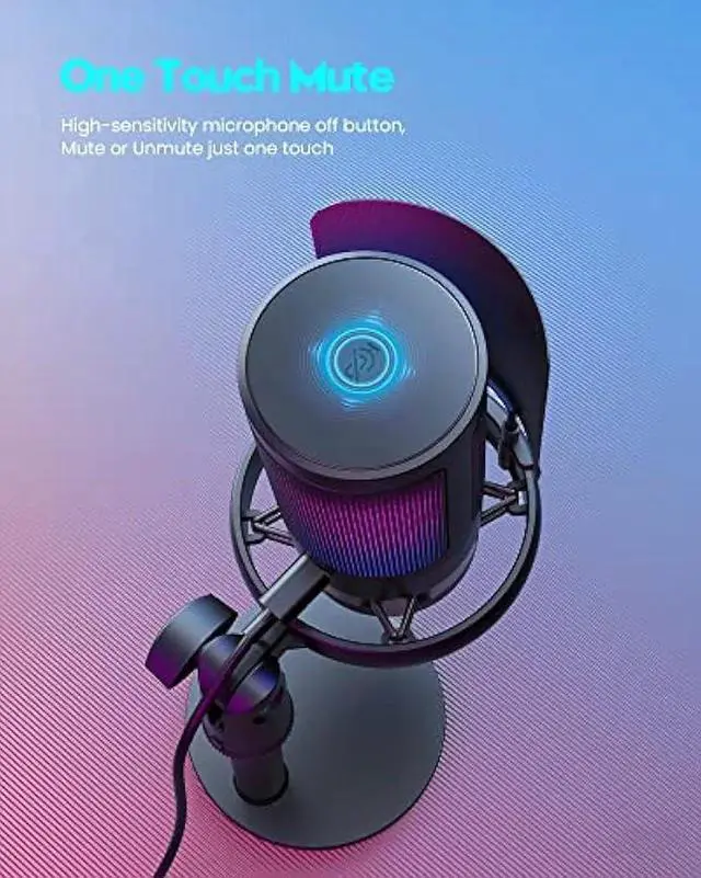 Practical and convenient function: It is equipped with a one-button mute touch sensor. When you want to close the microphone, you only need to touch it lightly to mute the sound, and the RGB light will go out to inform you that the microphone has been successfully closed. Equipped with a rotary control volume button at the bottom. There is a 3.5MM headphone jack in the middle, you can plug in the headphones to monitor your own voice in real-time and make adjustments in time when recording.