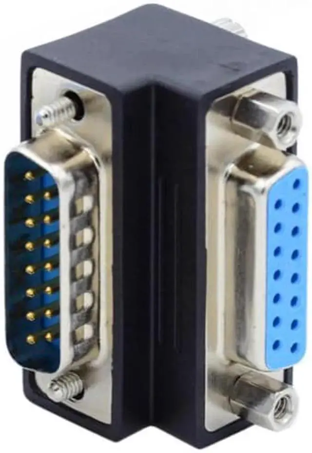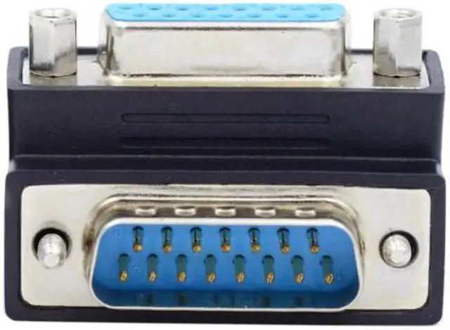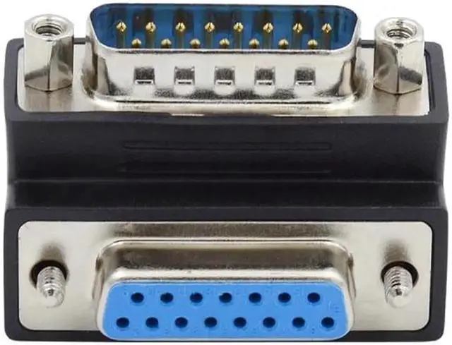 • D-subminiature 15pin Male Nut to Female Screw Extension Adapter DB Connector 90 Degree Angled