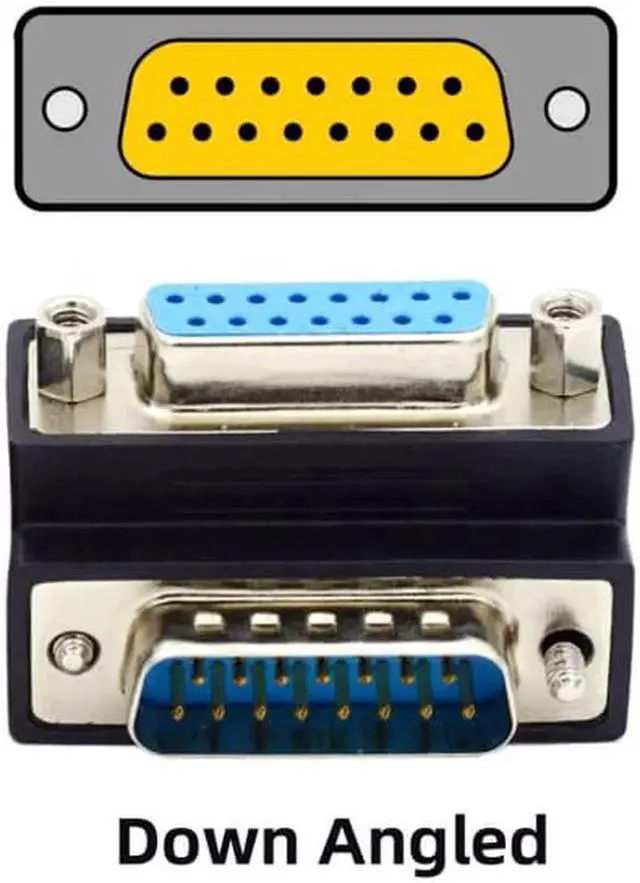 D-subminiature 15pin Male Nut to Female Screw Extension Adapter DB Connector Down 90 Degree Angled
