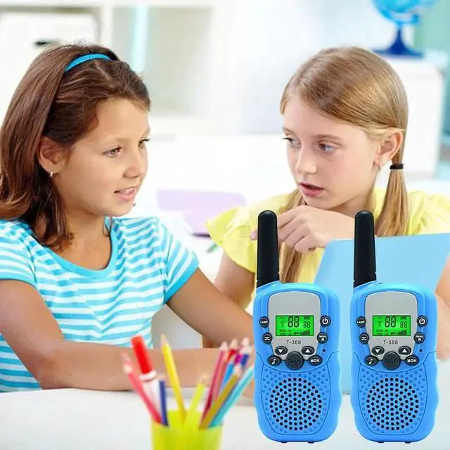 Highlights: HIGH GOOD QUALITY - Durable and Environmental material very safe and suit for kids. Crisp and smooth sound quality with adjustable volume level. This walkie talkies are easy to carry around while resisting wear and tear to provide kids with endless entertainment! ERGONOMIC DESIGN - Our Kids Walkie Talkie is small and lightweight, portable with ergonomic design for firm grip and belt clip for easy attachment when not in use, durable material will extend service life. HIGH DEFINITION SOUND - Crisp and smooth sound quality with adjustable volume level. Auto squelch function will mute the background noise so you get the crisp sound even in crowded places. THREE CHANNELS AND TWO MILES RANGE - This Kids Walkie Talkie provides an impressive 2 miles range and 3 channels, which enables a long distance play and open a world of possibilities within your child's outdoor adventures! PERFECT GIFTS - Our Kids Walkie Talkie is A Prefect Gift for kids. Great playing toys as your special gifts for kids, your friends or family members. Great festivals gifts, birthday gift or visit gift and suit for any outdoor activities.