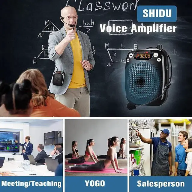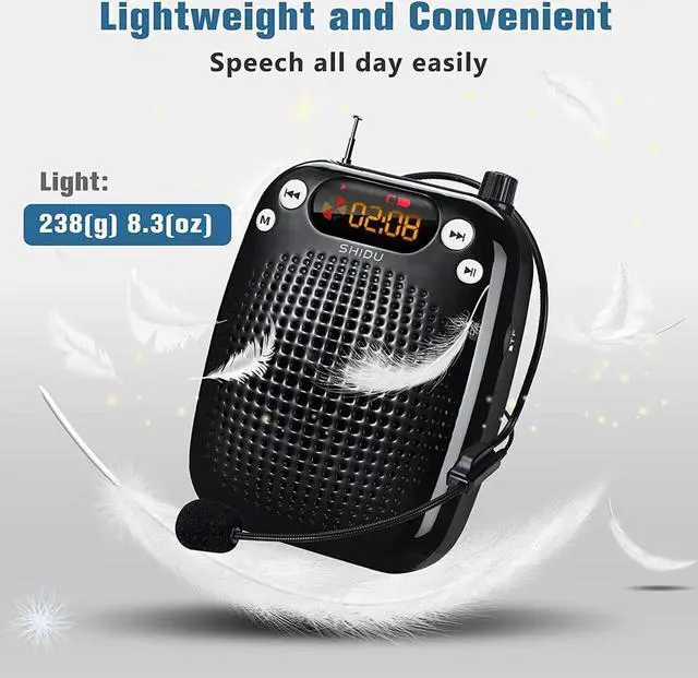Voice Amplifier --- Amplifys your voice and saves your throat. The sound is clear, crisp, no noise and no distortion. The max 10 watts sound can cover about 10000 sq. ft (1000 ), loud enough to cover a big room.