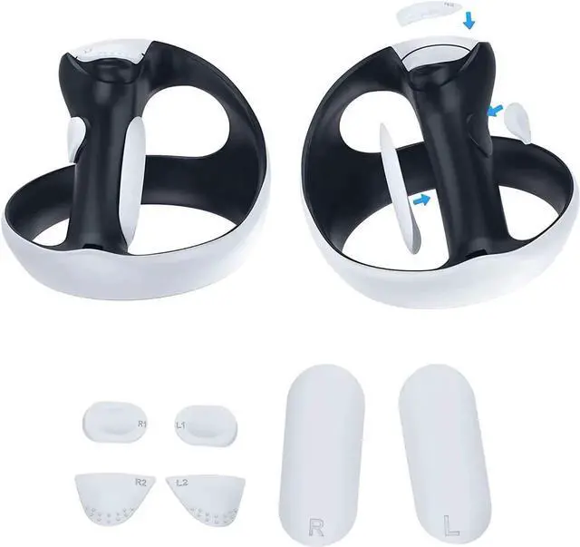 Easy and fast installation: 1- Split the Silicone Pads. 2- Tear the Protective Film. 3- Stick it on the Handle According to the the Mark on the Pad. If you Have any Problem About this PS VR2 Accessories kit, Please Feel Free to Contact us, Customer Satisfaction is our Eternal Pursue.