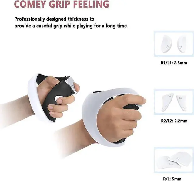 Perfect Match: The Silicone Pads are Perfectly Cut for Maximum Coverage, Which Can be Perfectly Matched With the Controller. Professionally Designed Thickness Provides More comfortable Support for Your Hands. (Thickness: R1/L1: 2.5mm, R2/L2: 2mm, RL: 5mm)
