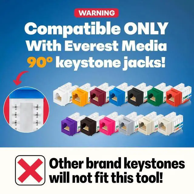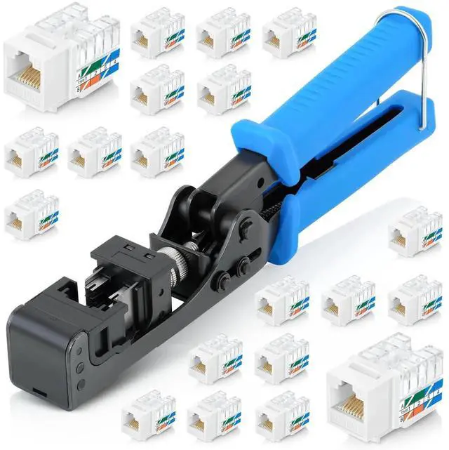 Everest easyJACK - 90° Angled Speed Termination Keystone Tool Set - with 20-Pack of RJ45 Cat6 Keystone Jacks in White (Slim Profile Design) - Time Saver Network Punch Down Tool Cat6