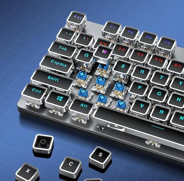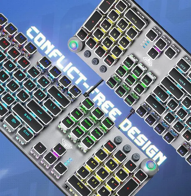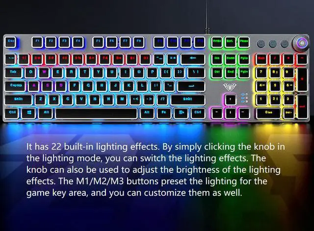 wusu F2088 Retro Steam-Punk Mechanical Keyboard for Gaming on Desktop Computer with Blue Switches