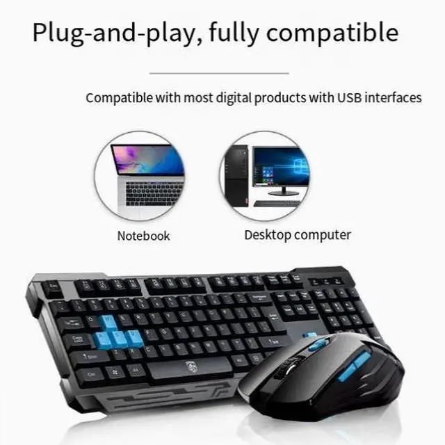 wusu Wireless mouse and keyboard kit for laptop, home office, gaming, USB