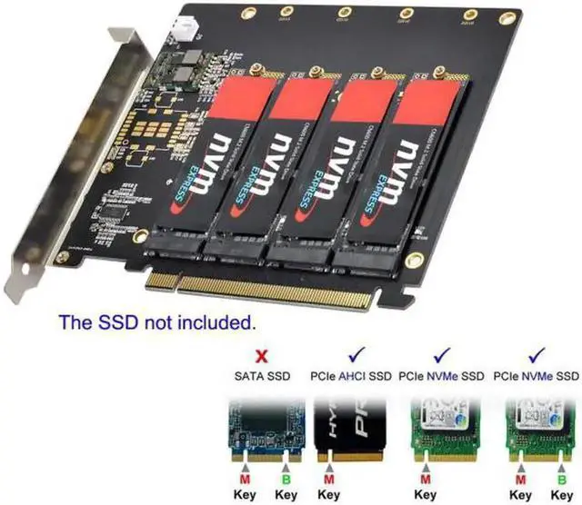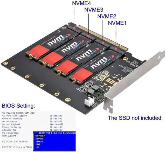 2.Only supports motherboards with detachable PCIE channels.Control the operation of four disks based on the motherboard PCIE channel,The motherboard without PCIE signal split can only recognize one disk