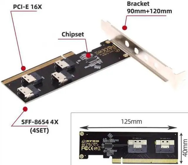3.Four Slimline SFF-8654 4X design, Stable installation, Can run 4 PCIE disks at full speed at the same time.
