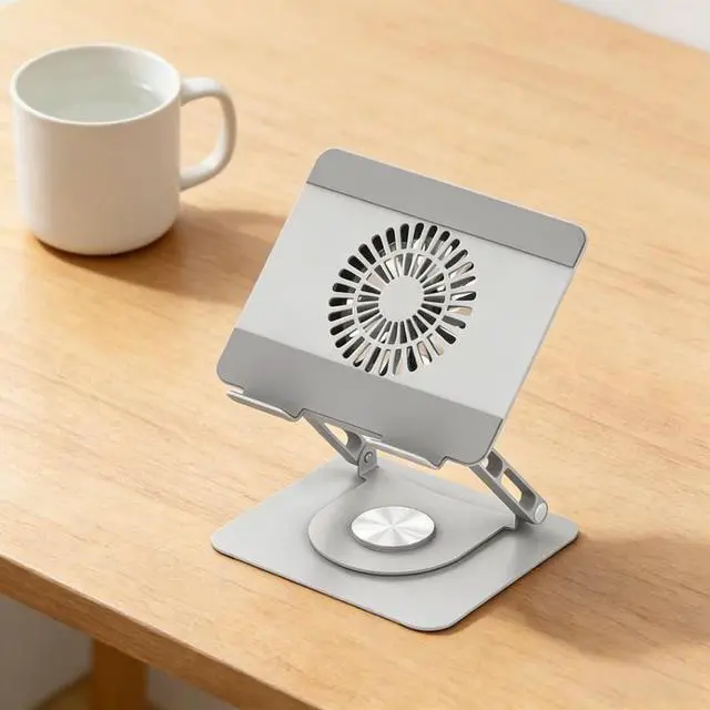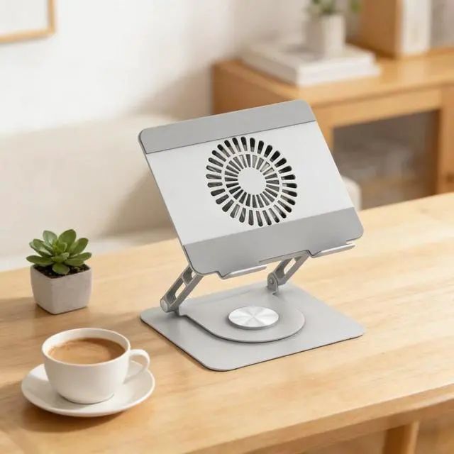 Carbon steel strip fan notebook stand, rotatable and adjustable for height, with cooling function, foldable and portable, for enhancing the height of the office desk.