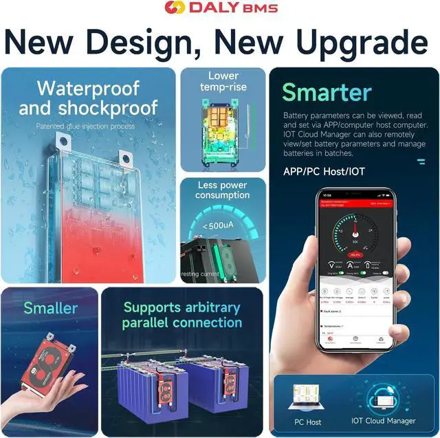 DALY BMSProtección contra sobrecarga; Protección contra sobredescarga; Protección contra sobrecorriente; Protección contra cortocircuito; Protección contra temperatura; Protección contra el agua.