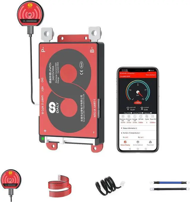 DALY Smart BMS 4S-24S 12V-72V 40A-500A con módulo Bluetooth, placa de protección de batería para paquete de batería LiFePO4 (LifePO4 24S 72V 100A+módulo BT)