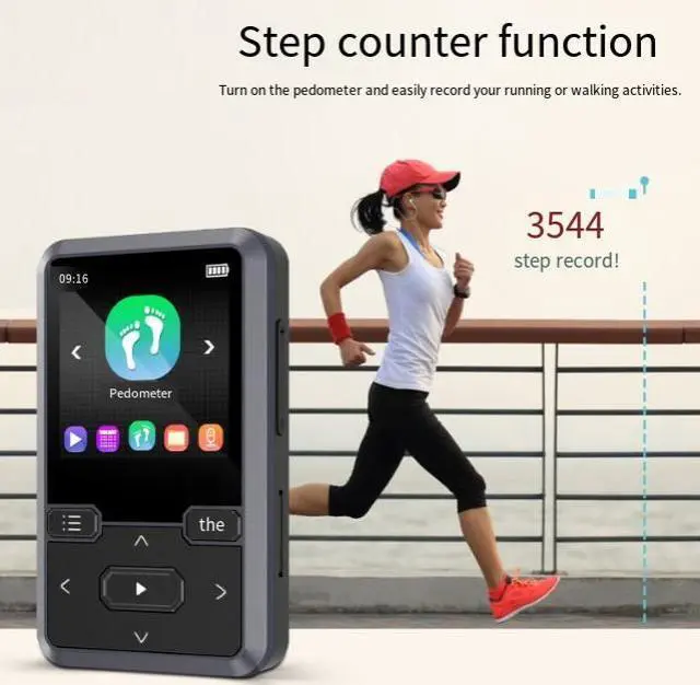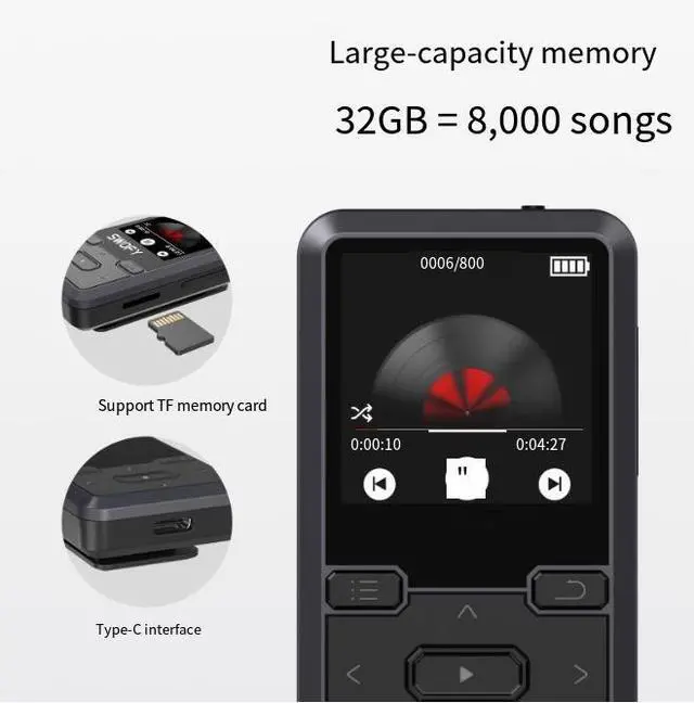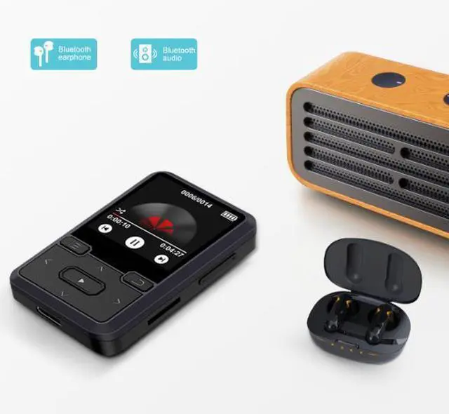 Portable music player with built-in earphone for listening to songs, clip-on Bluetooth for watching novels, mini MP3 player for music playback, e-book reader,32GB