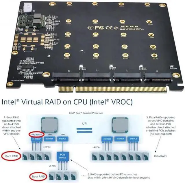 2.Only supports motherboards with detachable PCIE channels.Control the operation of four disks based on the motherboard PCIE channel,The motherboard without PCIE signal split can only recognize one disk