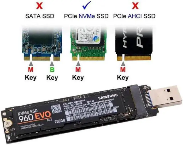 USB 3.0 to M.2(NGFF) NVME Storage adapter, providing one USB 3.0 connector on the host connection and one 67pin B key M.2 connector on the SSD storage devices connections.