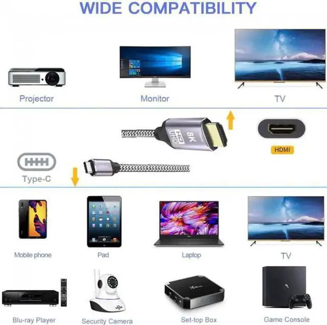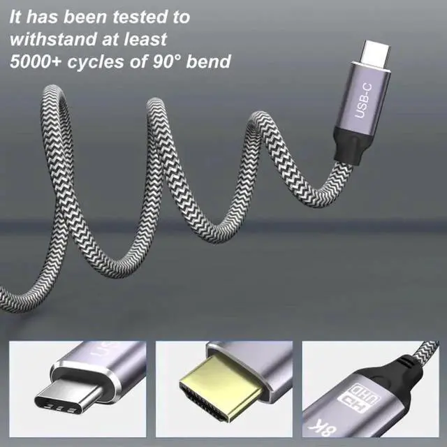 Gold-plated USB-C to hdmi monitor cable Video 8K,4K UHD 2160p, HD 1080p, connectors, tinned copper wire, durable Nylon Braided, aluminum slim case, all of them ensure a strength connectivity between devices;