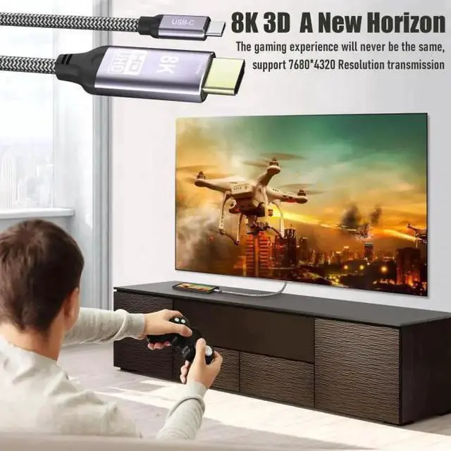 USB-C x HDMI cable supports 8K@30Hz, 4K@60Hz for USB4 USB-C Type-C Enabled Desktops and Laptops to Connect to HDMI Displays, enjoy home theater with 8K/4K high resolution.