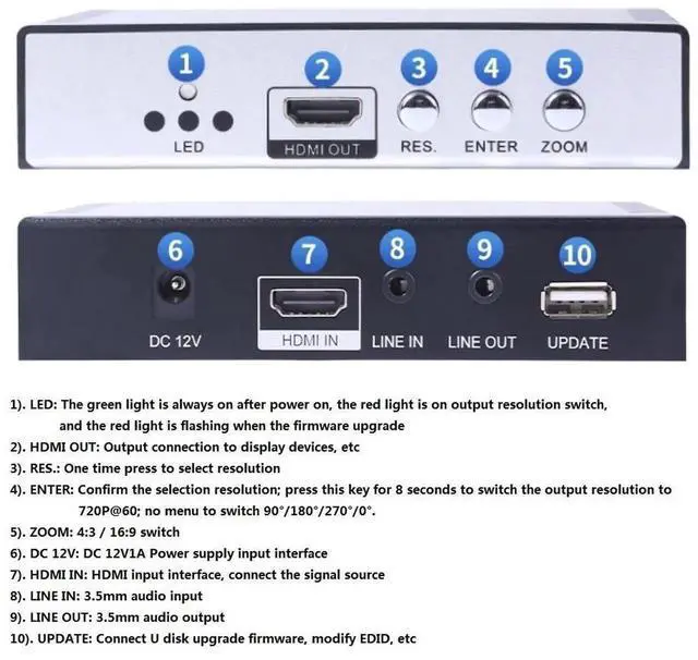 This is a high-performance support for 4K@60Hz input and output of the audio and video converter products. Support up and down frequency conversion, frame rate change, support audio synthesis and separation; new graphics algorithm, high definition, high turn low, low turn high font are very clear, completely no fork. Can rotate the picture and other operations, simple and easy to use.