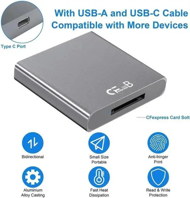 Product use: suitable for the extension of the CFexpress card to theUSB3.0 or USB3.1 slot.(not work for XQD/CFA card)