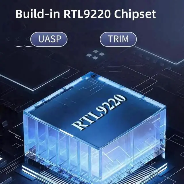 The RTL9220 chipset is a USB bridge that combines a USB device with both a PCIe controller and a SATA controller. Via the PEDET interface of M.2 mechanical, it can auto switch USB-to-PCIe mode, or USB-to-SATA mode.