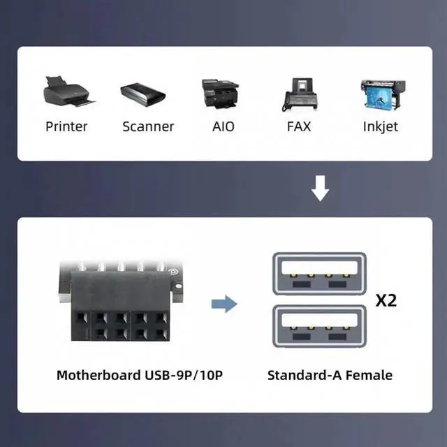 You can convert the 9pin motherboard internal port to usb 2.0 device. Used to connect USB cables or adapter in tight fit applications.