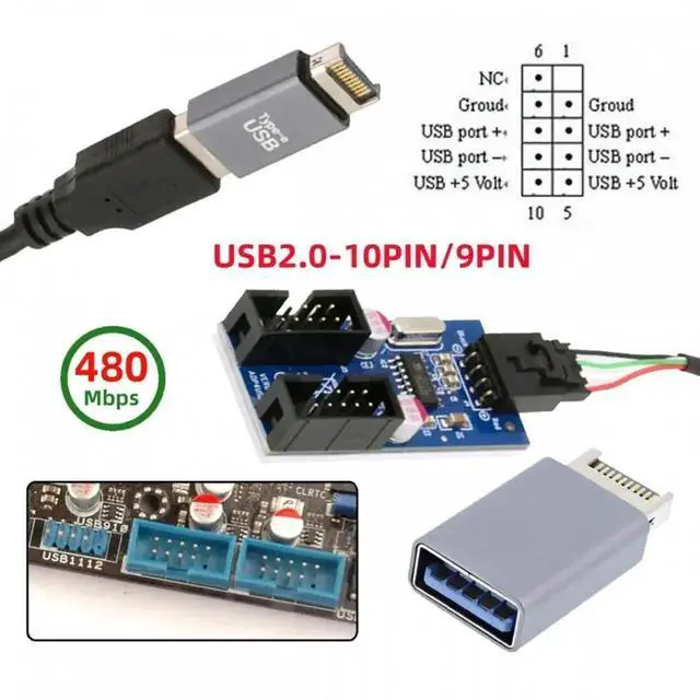 USB 3.1 Front Panel Header Male Type-E to USB 2.0 Type-A Female Dual Female Motherboard 9pin 10pin Header HUB Adapter Port Multiplier.