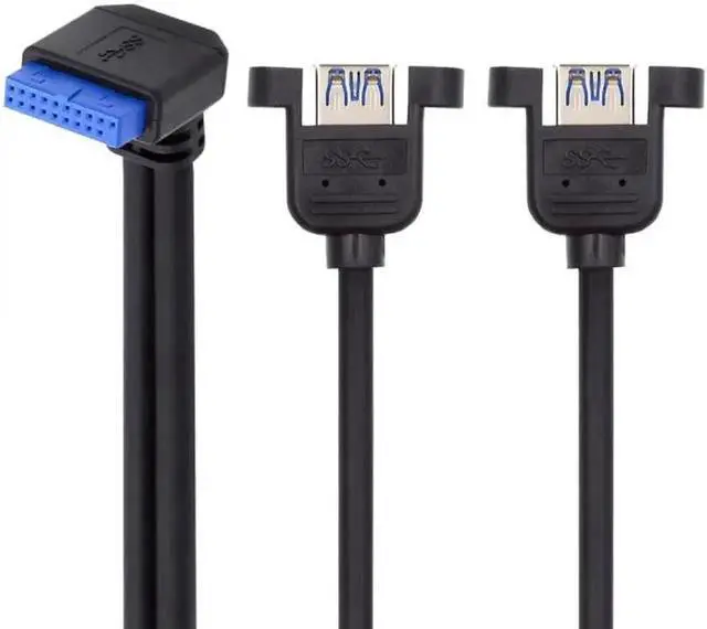 • Angled 19/20Pin Header to USB 3.0 Dual Ports Female Screw Mount Type Cable 90 Degree 5Gbps