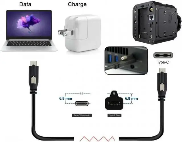 6. The Type-C USB Locking Cables are USB-C Vision Standard compliant and tested to be fully compatible with industrial USB 3.0 Machine Vision cameras.