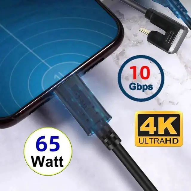 USB3.1 Type-C Male to USB-C 360 Degree Opposite Back Angled 10Gbps Data Cable 65W