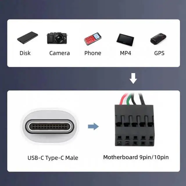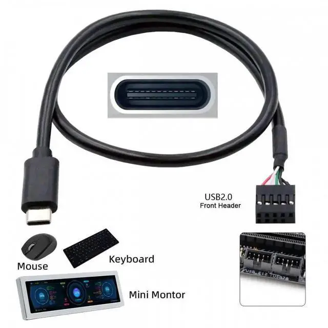 USB 2.0 Motherboard 9pin 10pin Header to Type-C USB-C Cable 50cm for Mini Monitor Sensor Panel Camera