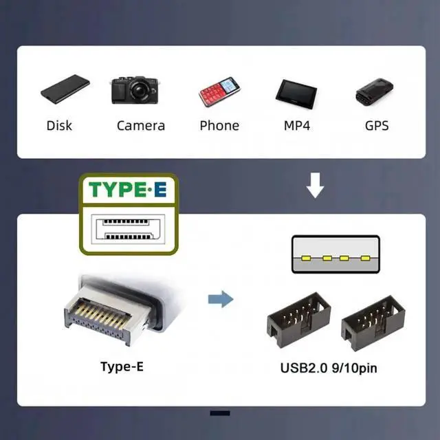 It can extend your type-E connector to 2*9pin connectors. You can convert the 20pin Type-E motherboard internal port to usb 2.0 4pin/9pin/10pin device. Used to connect USB cables or adapter in tight fit applications.