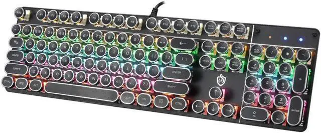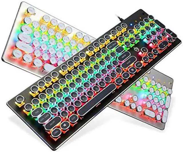 The white keyboard has retro steampunk inspired round keycap design, giving off a nostalgic and fantastic flair. Coupled with transparent mechanical switches and RGB backlighting with 7 colors and 9 effects, it will uniquely cheer up your gaming setup.
