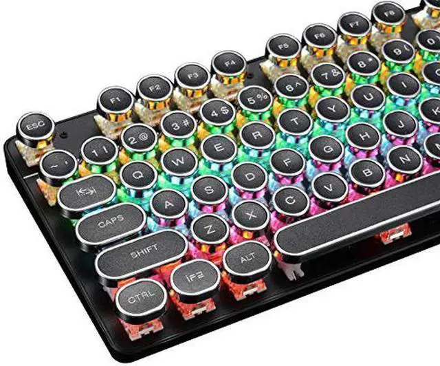MECHANICAL GAMING KEYBOARD: Retro round keycap design, high-quality front panel, innovative structure of all key mechanical green axis design to meet the actual needs of professional players. the reputation and performance like Cherry switch, haptic feedback, audible clicky sound, accurate and precise response, long-wearing, long-lasting use does not fade