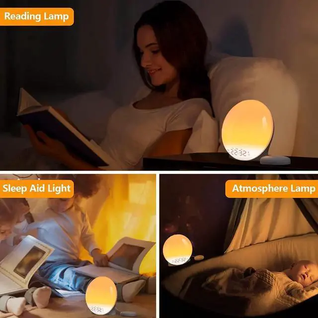 Wake Up Light Christmas GiftCan be used as bedside lamp, night light, mood light or even reading light. A great gift for your loved one. You can set different sounds/music before going to sleep, when you fall asleep the lights and music fade out and turn off. When feeding, it gives good visual effects without harshness or any disturbance to your sleep.