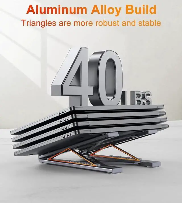 Ergonomic Design Laptop Stand: The Upgraded laptop docking station stand features 9-level to adjust the height, allowing you to choose the perfect angle for your posture and body type. It helps you to release the tension of your neck pain, back pain, and eye fatigue making you work comfortably and keep healthy. The triangle support design makes the laptop stand more stable. The non-slip silicone pad on the stand can fix your laptop in place and protect your device from scratches and slipping. The forward-tilt angle and open design provide increased ventilation and more airflow to cool your laptop while operating other than lying flat on the table.