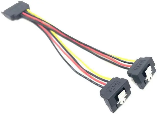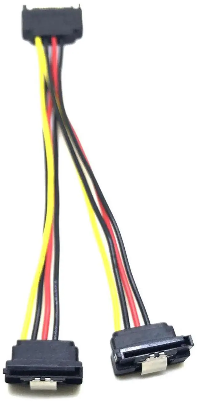SATA male connector divided into two SATA female power cables. SATA 15-pin male connectorconverts into two 15-pin female connectors with two split clips at the end. Product information.
