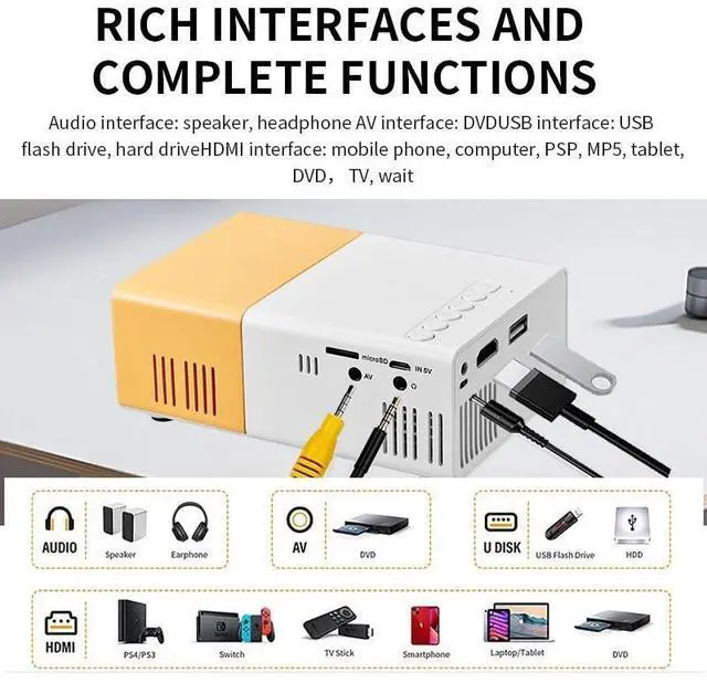YG300 Miniature Compact Projector - Home Office LED Portable Small Projection Machine - Home Theater