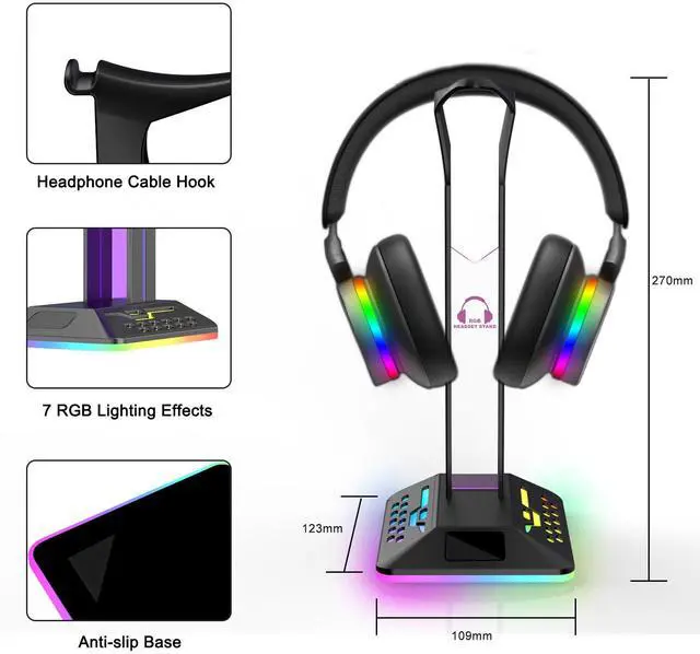 Headphone stand with RGB explosion-style color-changing and glowing effect - colorful gaming RGB headphone stand as a gift with USB connection