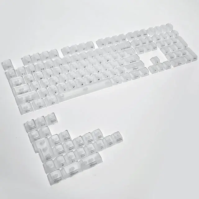Small full set box-packaged PC transparent material mechanical keyboard keycaps with no embossing on the front and side.