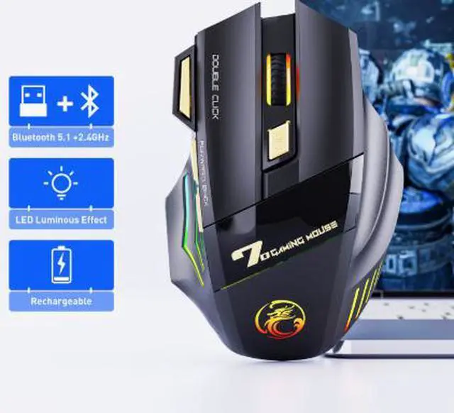 wusu 7-button, no double-click required. 2.4G silent rechargeable color-changing breathing light wireless gaming mouse.