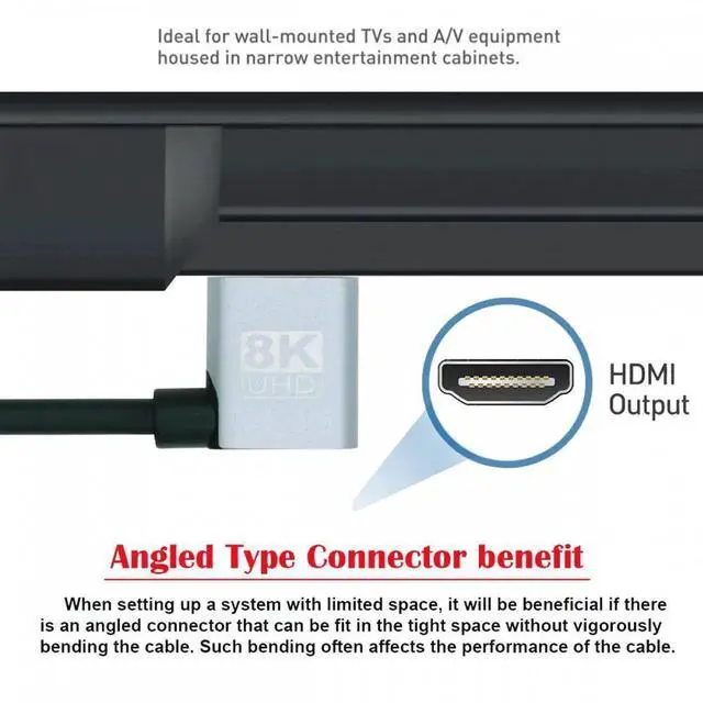 HDMI 2.1 Ultra Thin HDTV Cable 8K 4K Hyper Super Flexible Slim Cord Angled 90 Degree Type-A Male to Male for Computer HDTV