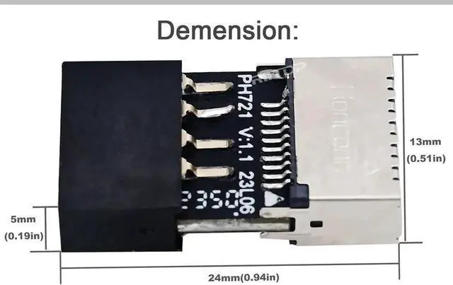 180-degree & Slim Design: It features the 180-degree and slim design, which avoids assembly interference caused by the position of the motherboard connector or the internal structure of the chassis. Dimension(L*W*H): 0.94*0.51*0.19in(24*13*5mm).