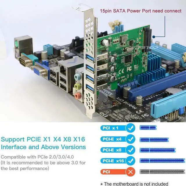 Complies with PCIe 2.0 standard with high performance NEC uPD720201 chipset.