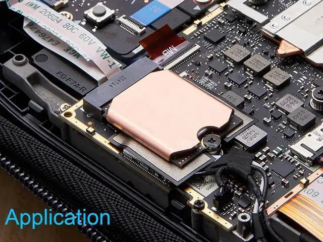 Phase change and silicone thermal pads: the thermal pads can not only improve heat dissipation, but also can make the ssd surface flat, to aviod bumping up against the Shield cover.